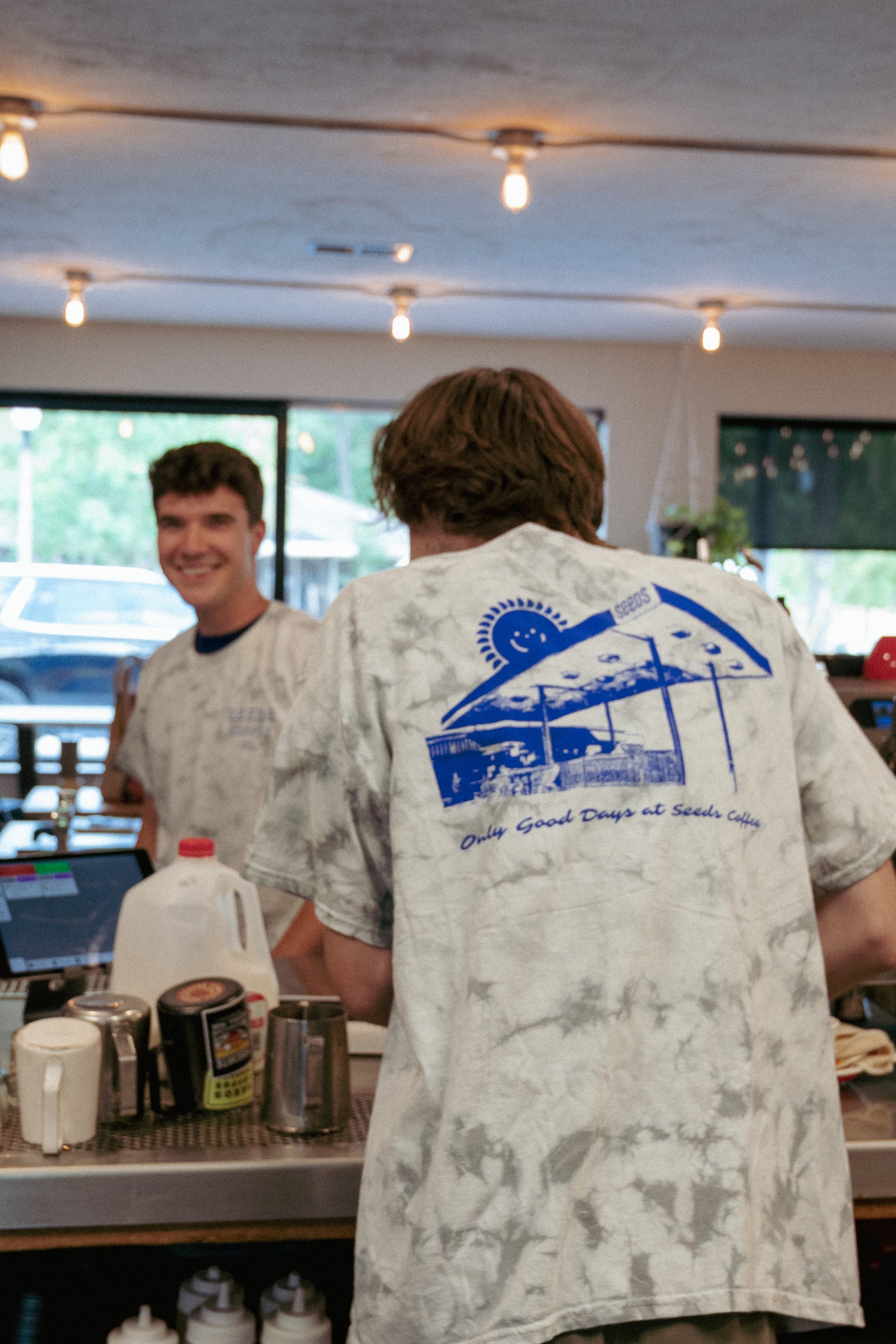 Our popular mug design is now on a washed T-shirt. Wear this as your reminder to have good days at Seeds Coffee!