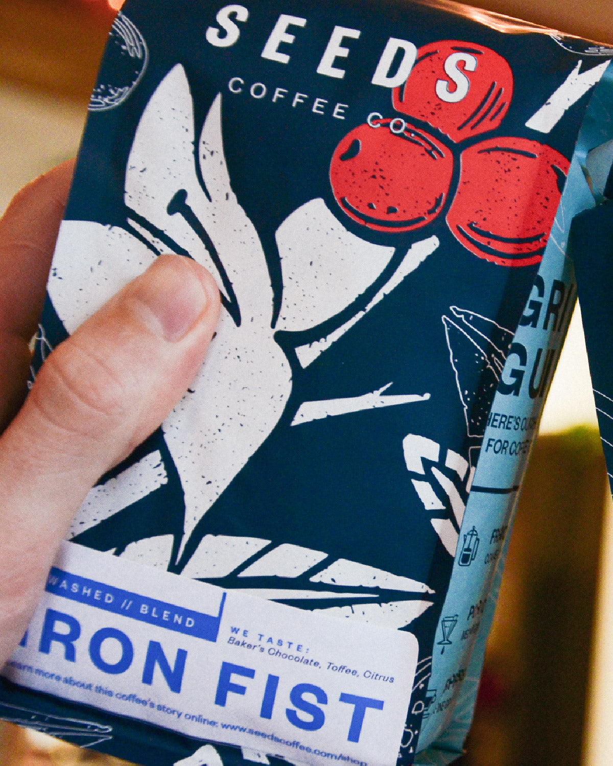 Our goal for this coffee is to create an approachable blend that not only shines as filter coffee but also tastes amazing in milk. This is our very first blend and it has taken multiple years to bring all of the components together for this coffee. The farms and producers represented in this coffee are all beautiful and have solid practices, which is why this blend packs an Iron Fist punch!